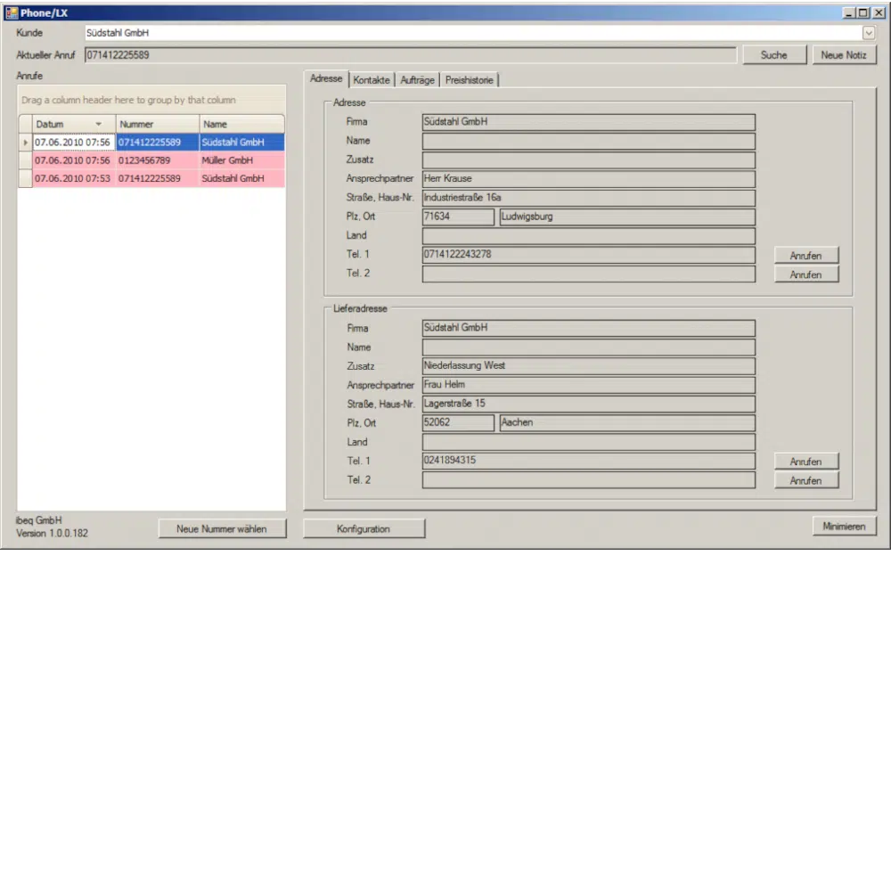 Natürlich können Sie mit CRM & Phone Manager Phone/LX auch Ihre Kunden anrufen, wenn Ihre TAPI-Schnittstelle entsprechend eingerichtet ist.