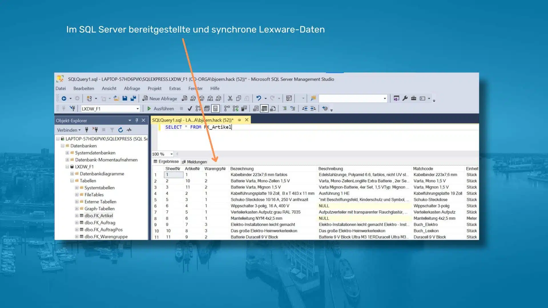 Die Funktionsweise dieses beeindruckenden Tools ist denkbar einfach. Es synchronisiert oder kopiert Daten aus Ihrer Lexware-Datenbank in eine offene Datenbank Ihrer Wahl. Das ist beispielsweise SQL-Server, Azure SQL, MySQL, MariaDB, PostgreSQL und viele mehr. Dabei erfolgt die Aktualisierung äußerst zügig und äußerst ressourcenschonend, um Ihnen einen optimalen Arbeitsfluss zu ermöglichen.